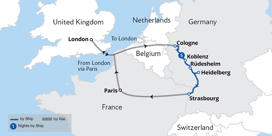 A festive cruise through Europe's most enchanting Christmas destinations on the Rhine river. Scenic landscapes and charming towns come alive with seasonal cheer as we sail through Germany and France during the most wonderful time of the year. From the twinkling lights of Koblenz's historic streets to the captivating markets of Rüdesheim,...